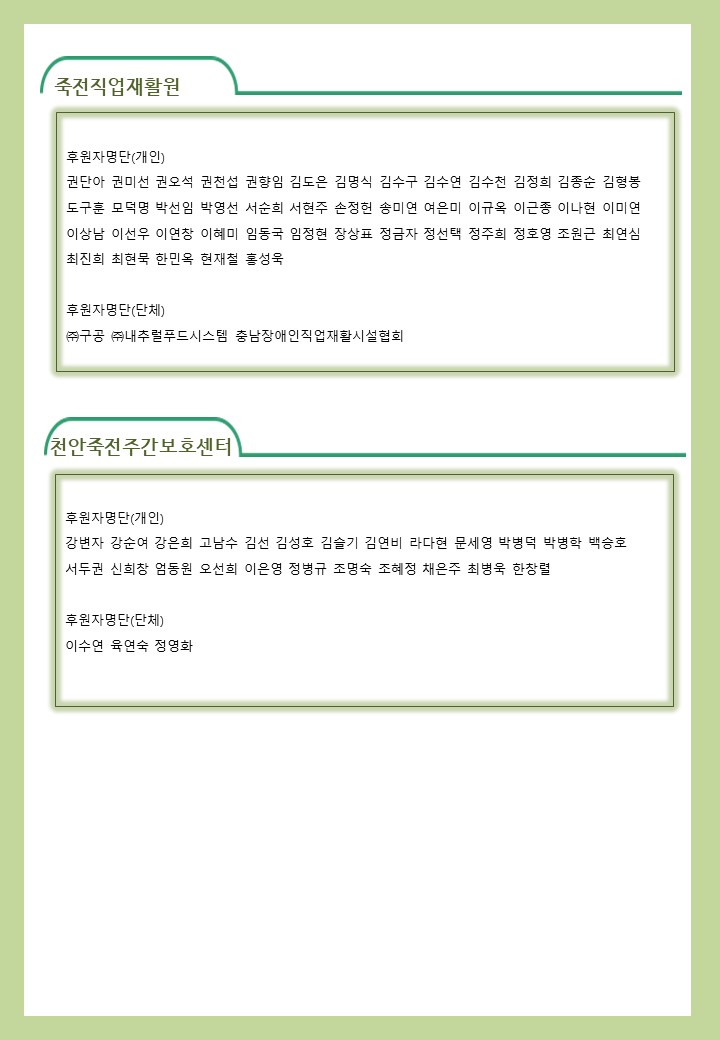 2022년 07월 사회복지법인 삼화복지재단 및 산하시설 후원금 수입·세출내역 및 후원자 명단 공고 페이지 정보 작성자 운영자 작성일22-08-08 19:01 조회4,606회 댓글0건 이전글 다음글 목록 본문 2022년 07월 사회복지법인 삼화복지재단 및 산하시설 후원금 수입·세출내역 및 후원자 명단 공고 2022년 07월 후원해 주신 모든 분들께 감사와 사랑을 전합니다. 댓글목록 등록된 댓글이 없습니다. 이전글 다음글 목록
