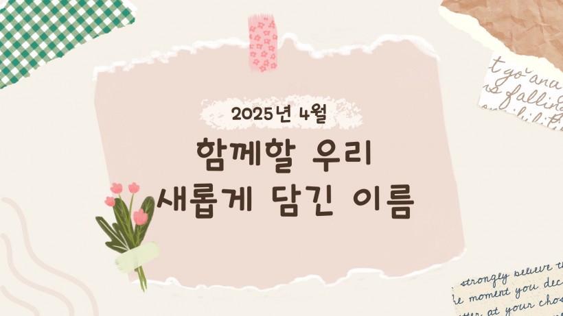 함께할 우리, 새롭게 담긴 이름 페이지 정보 작성자 김미리 작성일25-04-01 20:18 조회1,363회 댓글0건 이전글 다음글 목록 본문 2025년 4월 새롭게 변화 된 저희 센터에 대해 소개합니다. 댓글목록 등록된 댓글이 없습니다. 이전글 다음글 목록
