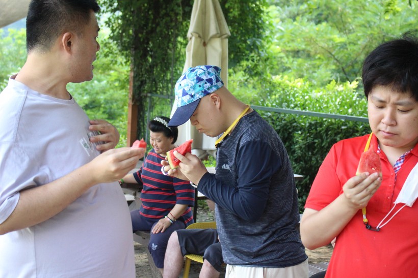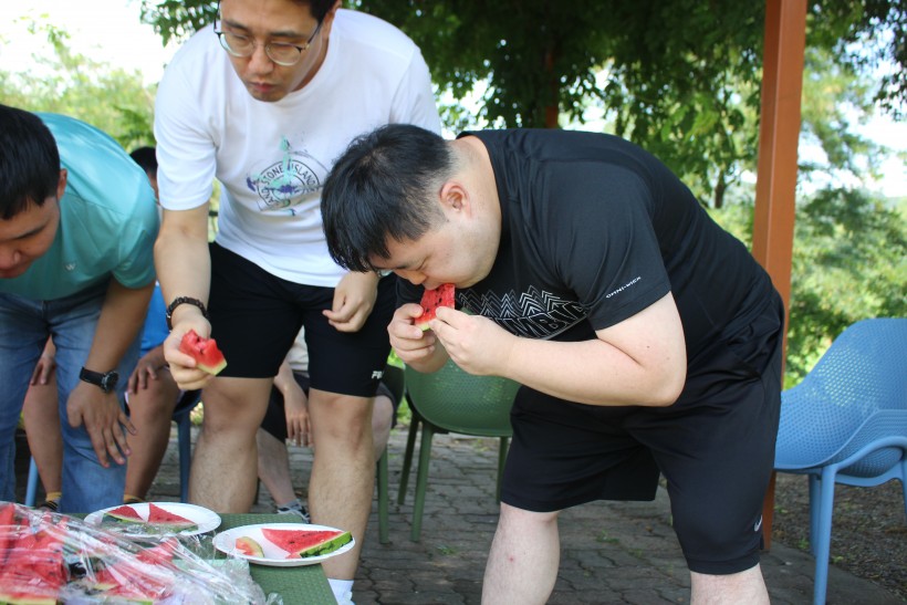 오후시간에는 선선한 그늘에서 '수박 빨리 먹기'