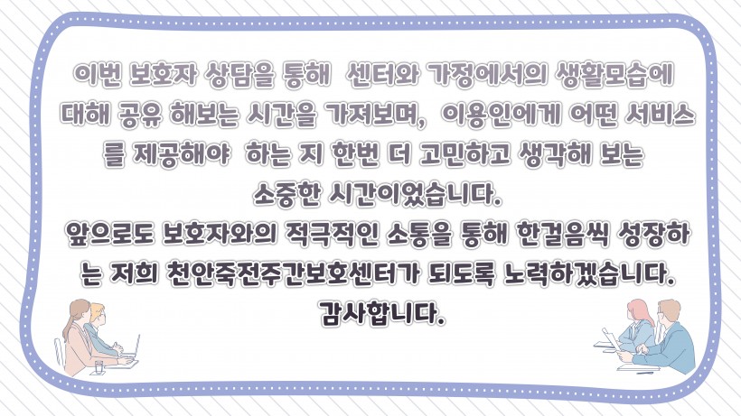 바쁘신 와중에도 상담에 참여해 주신 모든 보호자님들께 감사드립니다.