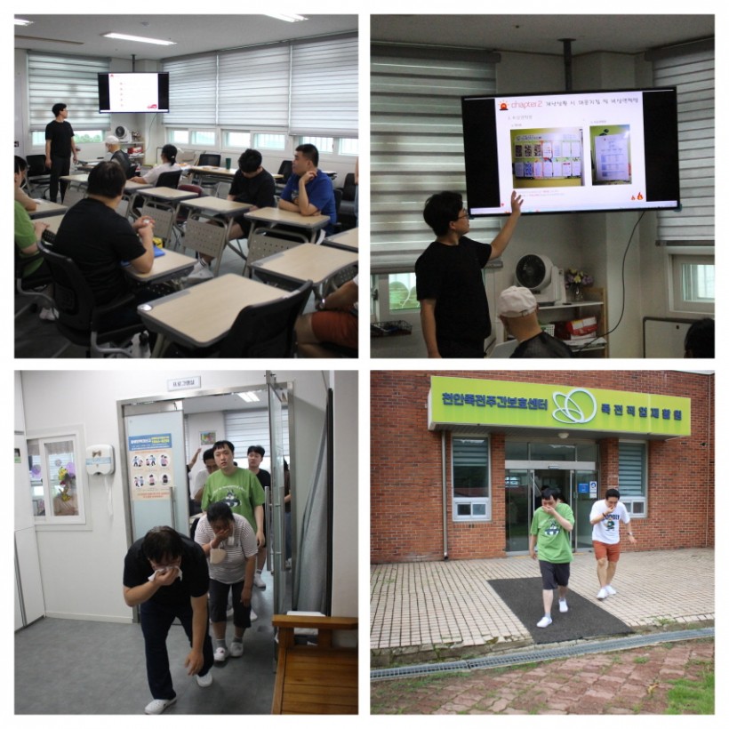 저희 센터에서는 센터 혹은 다른 건물에 화재가 발생했을 때 안전하게 대피하기 위한 요령을 배워보고 , 센터에서 화재가 발생했다는 가정 하에 소방대피훈련을 진행하였습니다.