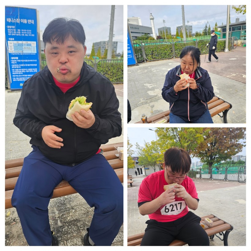 각자의 컨디션에 맞게 걷기도 하고, 뛰기도 하며 몸에 무리가 가지 않도록 하였고, 마라톤 코스 중간에 이용인들이 힘들어하는 모습을 보여 5km를 완주하지는 못했지만 끝까지 최선을 다해 5km완주 메달을 받을 수 있었습니다.