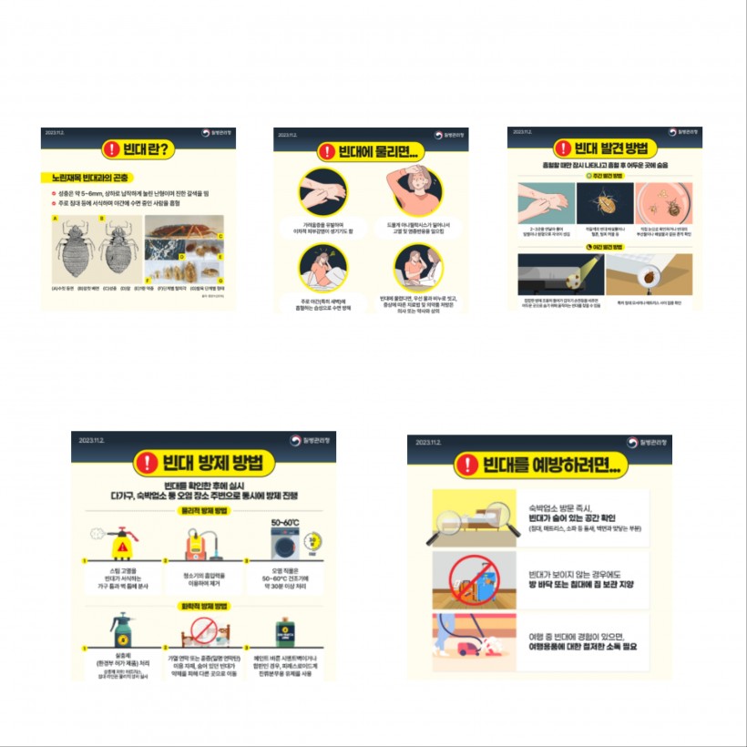 최근 빈대 출현 관련 뉴스가 계속 보도되고 있습니다. 정부는 빈대 확산 방지 정부합동회의를 개최하는 등 빈대 확산 방지를 위해 노력하고 있으며, 2023.11.13.~12.8. 까지 4주간 ‘빈대 집중점검 및 방제 기간’으로 지정하여 빈대 발생상황을 집중 점검하고 발견 즉시 신속한 방제 작업을 실시하고 있습니다.