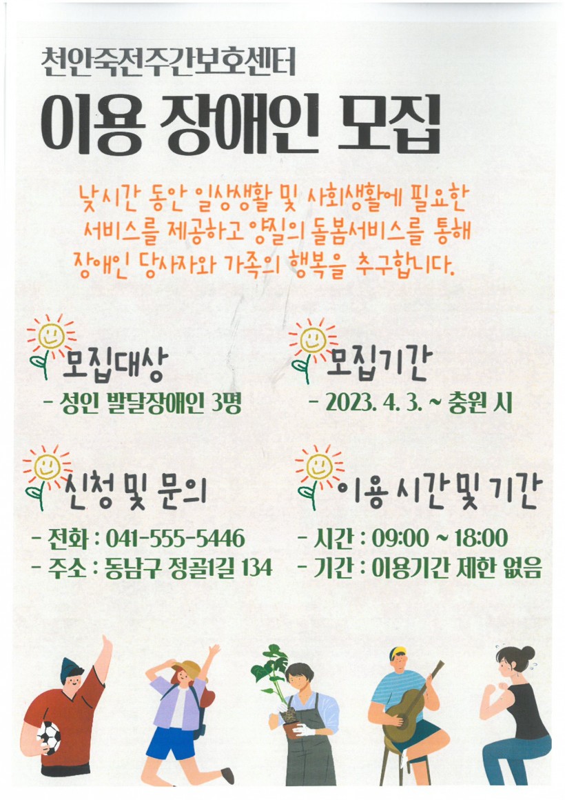 필요한 지역사회 장애인을 모집하고 있습니다.