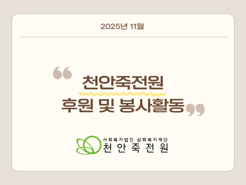 [11월] 후원 자원봉사 페이지 정보 작성자 운영자 작성일25-12-02 11:13 조회60회 댓글0건 관련링크 목록 본문 2025년 11월 후원 및 자원봉사입니다.마지막 12월 감기 조심하시고 잘 마무리 하시길 바랍니다.감사합니다. 댓글목록 등록된 댓글이 없습니다. 목록