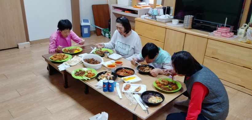 황애란씨 생일 회식을 했습니다. 매년 생일을 맞아 귀원했던 가족이었는데, 코로나19의 여파로 작년에 이어, 올해도 귀원하지 못해 그 아쉬움을 달래려고 같은방 가족들과 맛있는 식사를 같이 했습니다. 모두 즐거운 시간이었습니다. 생일 회식이 끝나고 부모님과 안부를 나누는 영상 통화도 했습니다.