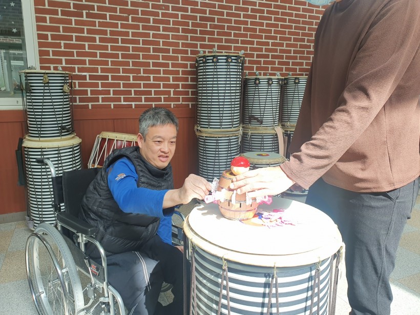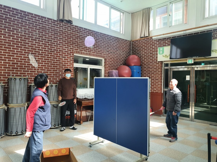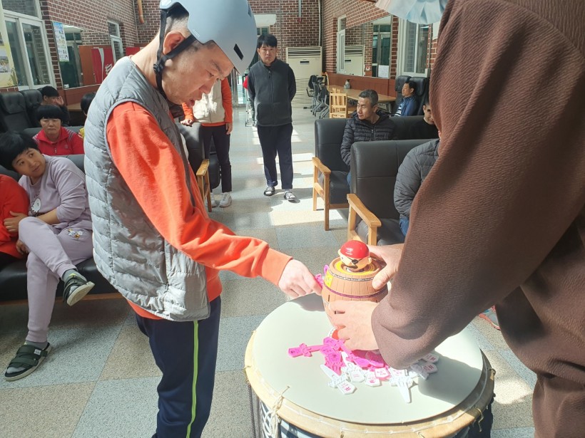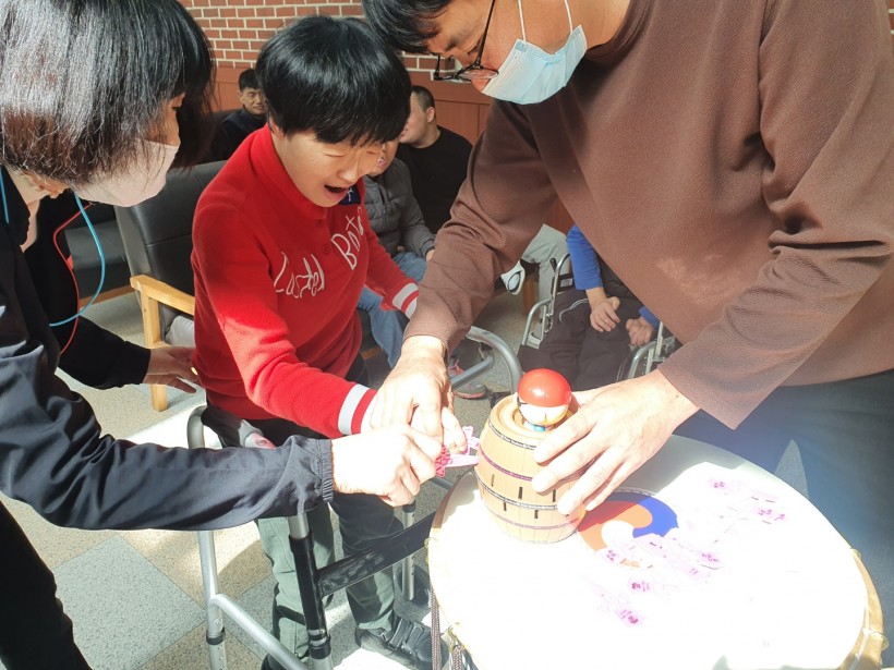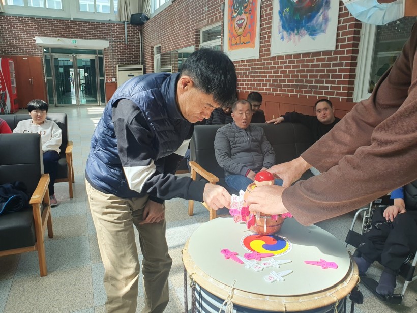 내용: 일상생활속에서 활력소를 만들기 위하여 해피레크레이션을 진행하고 있으며, 선생님들과 거주인 분들이 하나되어 게임을 하면서 즐거운 시간을 만들어 가고 있음.