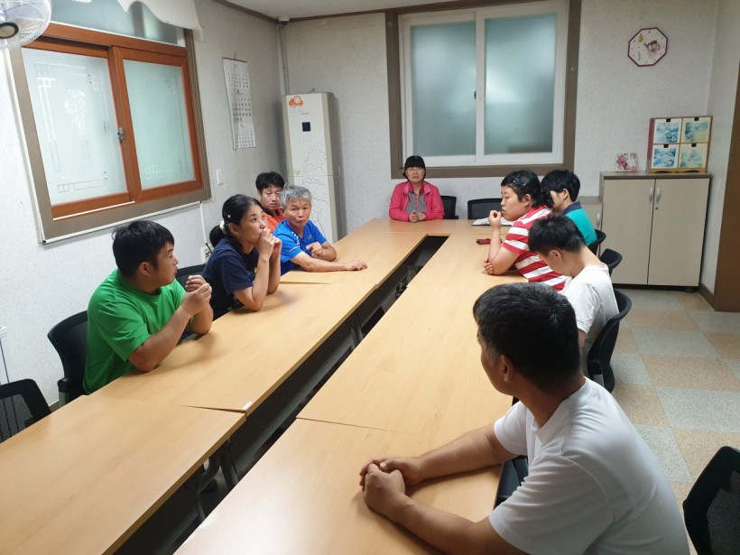 내 용 : 매월 말에 진행되는 죽전 자치회에 8월에는 각 생활실 자치위원님들과 천안죽전원에서의 일상생활 및 건의사항 등에 관해 이야기를 나누어보았습니다. 코로나 19로 인해 외부활동을 못 하는 부분에 많은 아쉬움이 있었지만, 종식 후 더 큰 즐거움을 기다리며 마땅히 원내 생활에서 다양한 활동으로 대체할 수 있도록 의견을 주기도 하셨습니다. 이처럼 자치위원분들의 다양한 의견과 표현을 들을 수 있는 시간이었습니다.