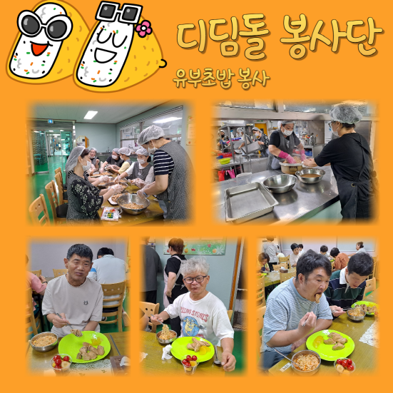 디딤돌봉사단은 매달 셋째주 토요일에 천안죽전원에 방문하여 죽전원 가족들에게 맛있는 유부초밥을 만들어 주시는 정기 자원봉사단입니다.