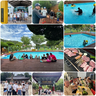 낮엔 캠프장에 있는 수영장에서 열심히 놀고, 저녁엔 맛있는 바비큐를 먹었습니다.