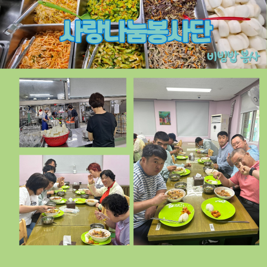 사랑나눔 봉사단이 월 1회 비빔밥 봉사를 위해 천안죽전원에 방문했습니다.