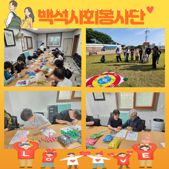 백석사회봉사단은 금요일 16시부터 17시까지 1시간 정도 죽전원 가족들과 같이 시간을 보내며 프로그램지원 봉사를 해주고 있습니다.
