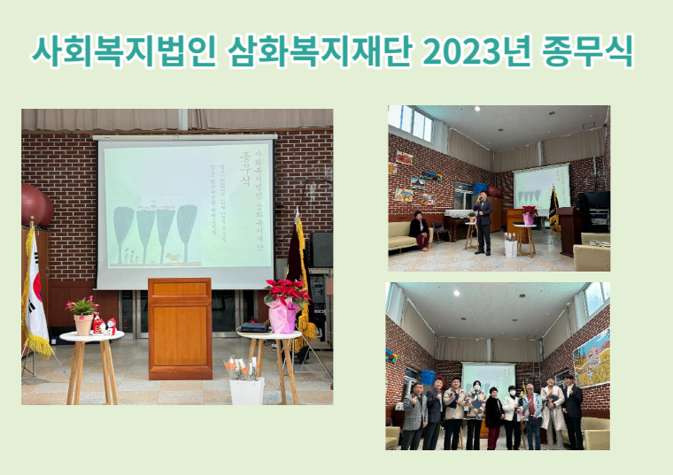 사회복지법인 삼화복지재단 2023년 종무식 페이지 정보 작성자 운영자 작성일23-12-29 17:53 조회818회 댓글0건 관련링크 목록 본문 23.12.29산하시설 원장님들의 송년사의 시작으로 올해 우수직원 및 거주인 수상으로 종무식을 진행하였습니다.올 한해 모두 수고하셨습니다.새해에도 더욱더 활기차고 천안죽전원 가족들의 행복을 위해 노력하겠습니다. 댓글목록 등록된 댓글이 없습니다. 목록