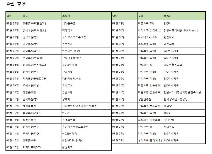 [후원] 9월후원품 페이지 정보 작성자 운영자 작성일23-10-16 17:51 조회574회 댓글0건 관련링크 목록 본문 9월 후원해주신 모든 후원자님께 다시 한번 감사드립니다~! 댓글목록 등록된 댓글이 없습니다. 목록