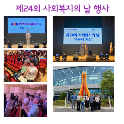 제24회 사회복지의 날 행사 페이지 정보 작성자 운영자 작성일23-09-19 17:24 조회524회 댓글0건 관련링크 목록 본문 23.09.15(금)천안시사회복지의 날 행사를 참여하였습니다.행사 진행 시 천안죽전원 최은정 선생님이 유공자 표창을 받았습니다.이번 행사를 참여하면서 모든 선생님들께 감사인사를 전합니다~! 댓글목록 등록된 댓글이 없습니다. 목록