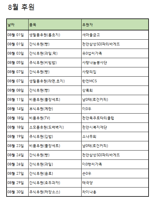 [후원] 8월 후원품 페이지 정보 작성자 운영자 작성일23-09-19 11:59 조회504회 댓글0건 관련링크 목록 본문 8월 후원해주신 모든 후원자님께 다시 한번 감사드립니다~! 댓글목록 등록된 댓글이 없습니다. 목록
