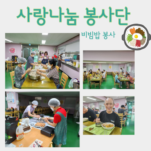 [자원봉사] 사랑나눔봉사단 페이지 정보 작성자 운영자 작성일23-08-08 17:36 조회466회 댓글0건 관련링크 목록 본문 23.08.05(토)무더운 날씨에도 사랑나눔봉사단에서 천안죽전원 거주인분들을 위해 맛있는 비빔밥 봉사를 해주셨습니다.월1회 점심으로 비빔밥 제공을 해주시고 있습니다.먹음직스러워 보이는 음식에 모두들 맛있고 행복하게 드셨습니다.항상 감사합니다 ^^! 댓글목록 등록된 댓글이 없습니다. 목록