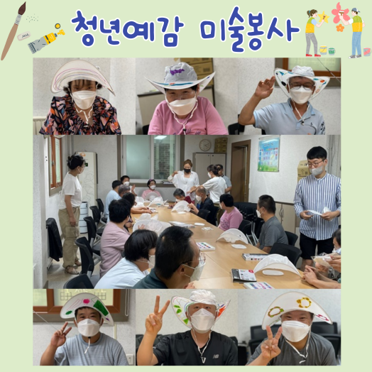 [자원봉사]청년예감 페이지 정보 작성자 운영자 작성일23-08-28 17:31 조회516회 댓글0건 관련링크 목록 본문 23.08.26(토)청년예감에서 미술 봉사를 진행하였습니다.흰색 모자에 각자가 꾸미고 싶은 대로 모자를 꾸며보는 프로그램을 진행하였습니다.완성된 모자를 각자 써보면서 멋있는 포즈로 사진도 찍어보고재밌는 시간을 가졌습니다.봉사를 진행해 준 청년예감에게 감사를 전합니다 :) 댓글목록 등록된 댓글이 없습니다. 목록
