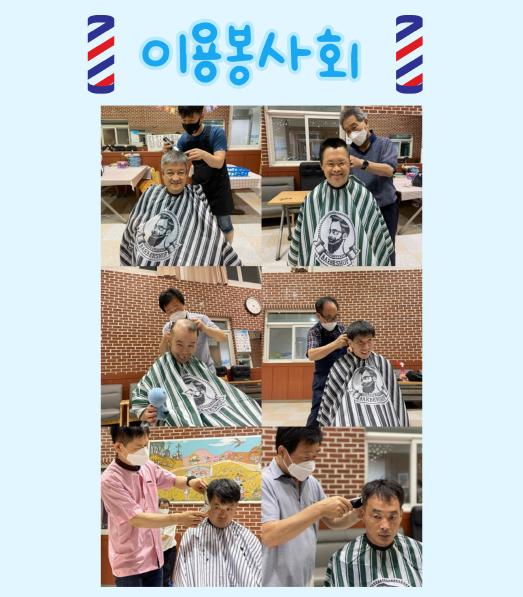 [자원봉사] 이용봉사회 페이지 정보 작성자 운영자 작성일23-06-20 09:58 조회508회 댓글0건 관련링크 목록 본문 23.06.19(월)이용 봉사회 이미용봉사 활동을 진행해 주셨습니다.매월 1회 죽전원을 찾아와 가족들 미용을 해주십니다가족들 모두 멋진 미모를 뽐내고 있습니다항상 잊지 않고 봉사를 위해 찾아주셔서 감사합니다 ^^! 댓글목록 등록된 댓글이 없습니다. 목록