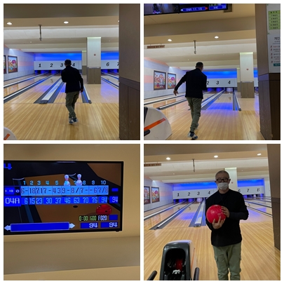 볼링장에 도착하고 나서 본인에게 맞는 볼링화와 공을 찾고 게임에 집중하셨습니다.