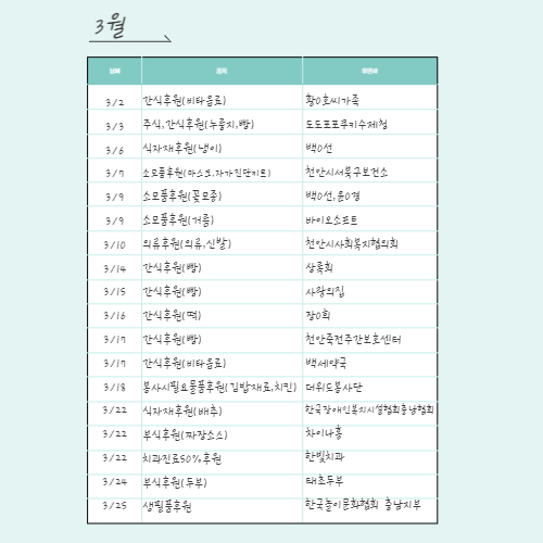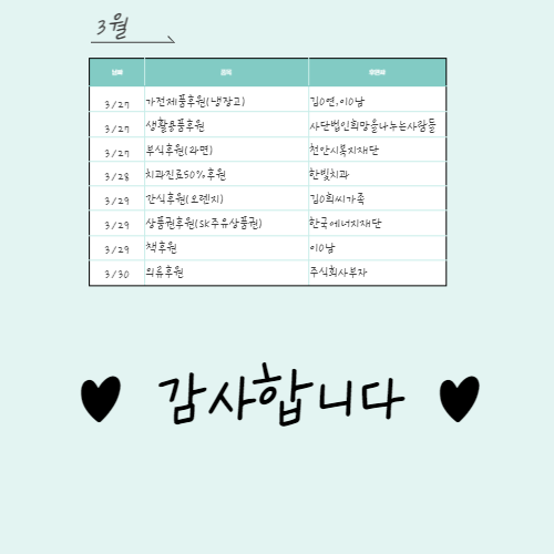 [후원] 3월후원품 페이지 정보 작성자 운영자 작성일23-04-03 17:41 조회375회 댓글0건 관련링크 목록 본문 3월 후원해주신 모든 후원자님께 다시 한번 감사드립니다~! 댓글목록 등록된 댓글이 없습니다. 목록