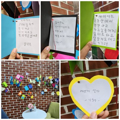 2023년 소원카드 전시회~ 페이지 정보 작성자 운영자 작성일22-12-29 18:37 조회369회 댓글0건 관련링크 목록 본문 천안죽전원 가족들의 2023년 소원은 무엇일까요?소원카드가 주렁주렁 열렸네요. 가족들의 소원을 살~짝 볼까요?우리가 간절히 원하면 모두 이루어질 꺼예요! 천안죽전원 가족들의 소원은 늘 현실이 된답니다. 기대하세요. 2023년!! 댓글목록 등록된 댓글이 없습니다. 목록