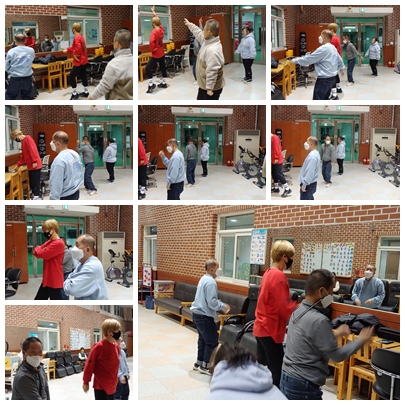 강사님도 거주인분들도 너무 반갑게 인사를 나누고 그동안의 못다한 이야기와 서로의 건강을 물어보는 시간을 같고 댄스수업을 하였습니다.