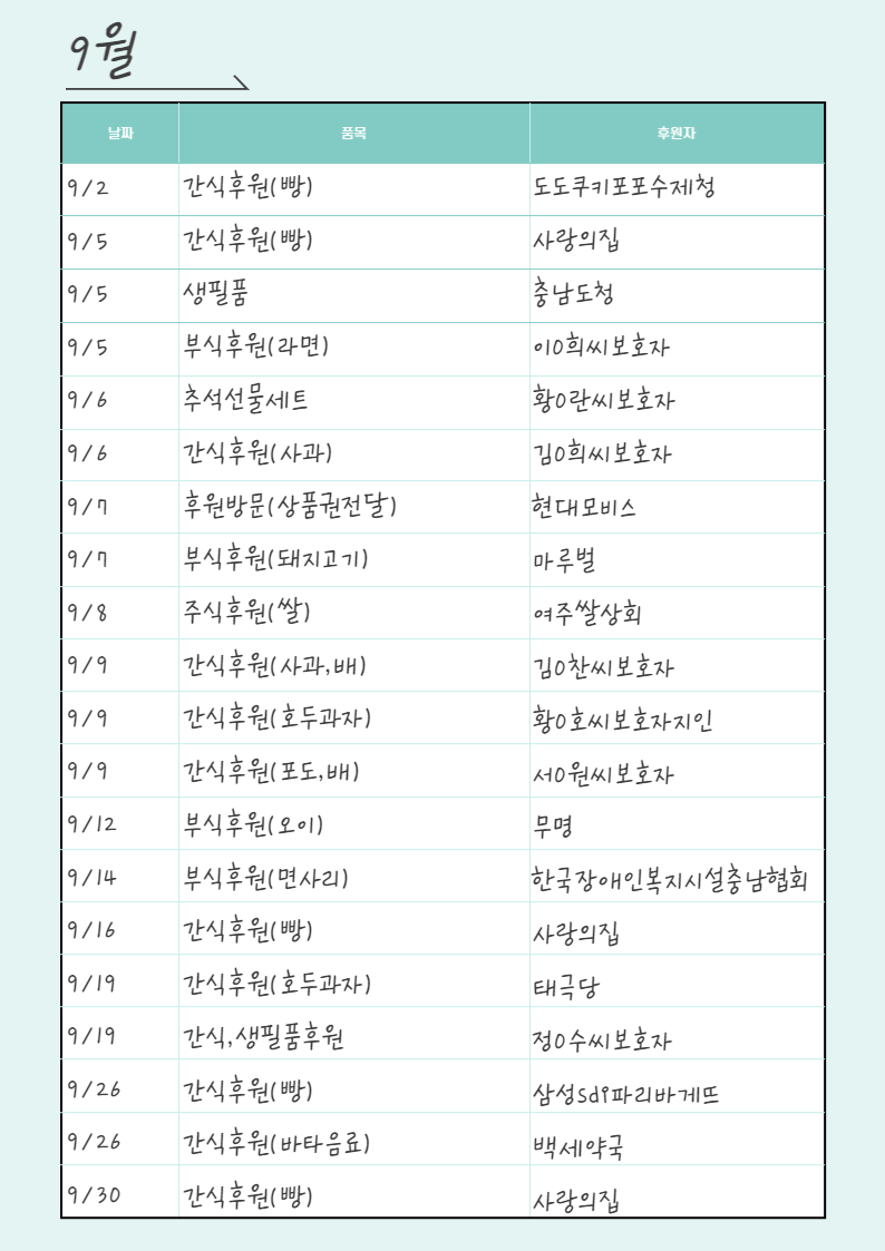 [후원]9월 후원품 페이지 정보 작성자 운영자 작성일22-10-04 16:35 조회351회 댓글0건 관련링크 목록 본문 9월 후원품 목록입니다.후원해 주신 모든 분들께 감사드립니다~! 댓글목록 등록된 댓글이 없습니다. 목록