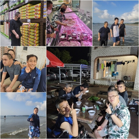 죽전원 가족들이 직접 장을 보고 태안에 도착하여 바다 수영도 하며 즐거운 시간을 보냈고