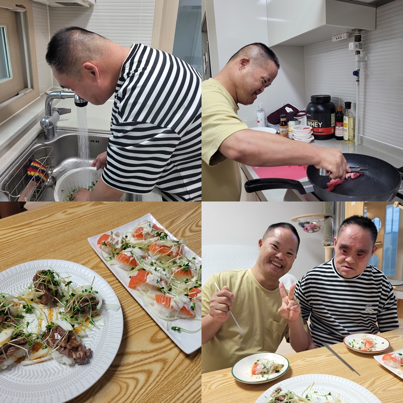 연어초밥과 소고기초밥을 만들어 식사하며 즐거운 시간을 보냈습니다~