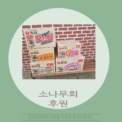[후원]소나무회 페이지 정보 작성자 운영자 작성일22-07-28 19:56 조회320회 댓글0건 관련링크 목록 본문 2022.07.16(토)소나무회에서 간식을 후원해 주셨습니다.감사합니다. 댓글목록 등록된 댓글이 없습니다. 목록