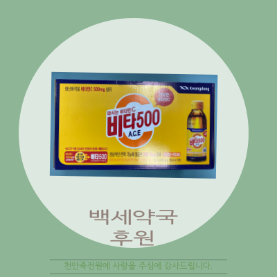 [후원]백세약국 페이지 정보 작성자 운영자 작성일22-07-22 09:45 조회292회 댓글0건 관련링크 목록 본문 2022.07.19(화)백세약국에서 비타음료를 후원해 주셨습니다.감사합니다. 댓글목록 등록된 댓글이 없습니다. 목록