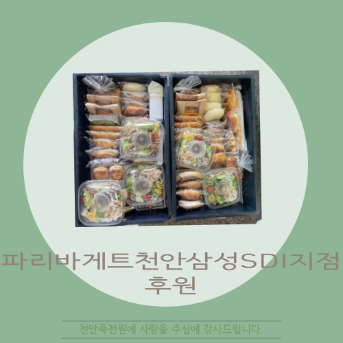 [후원]파리바게트천안삼성SDI지점 페이지 정보 작성자 운영자 작성일22-07-11 09:36 조회298회 댓글0건 관련링크 목록 본문 2022.06.02(화)파리바게트천안삼성SDI지점에서 맛있는 빵을 후원해 주셨습니다.감사합니다. 댓글목록 등록된 댓글이 없습니다. 목록