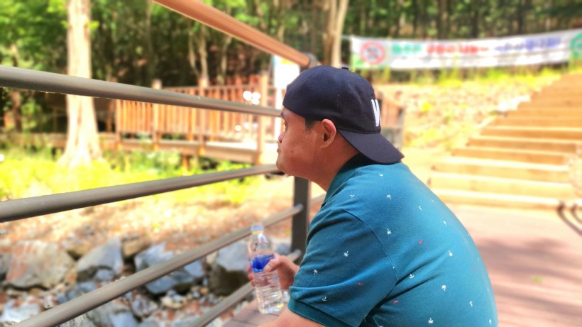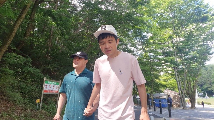 화순 씨는 중간에 저랑 함께 내려와서 공원을 산책했습니다.