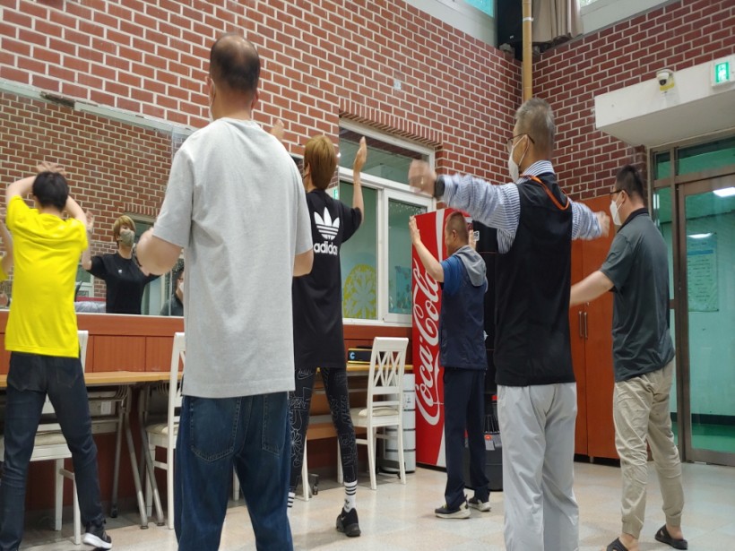 5월 정다운 친구들 시간이 되어 가족분들이 강사님의 동작에 따라 열심히 춤을 추는 시간을 가졌습니다