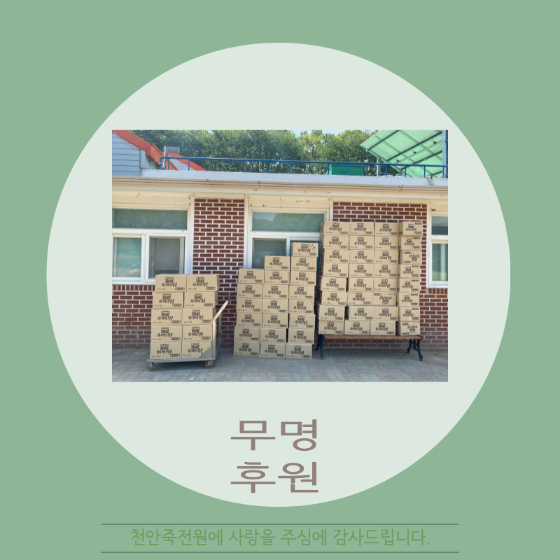 [후원]무명후원자 페이지 정보 작성자 운영자 작성일22-05-11 09:54 조회319회 댓글0건 관련링크 목록 본문 2022.05.02(월)무명후원자님께서 천안죽전원을 방문하여 간식 후원을 해주셨습니다.감사합니다 :) 댓글목록 등록된 댓글이 없습니다. 목록