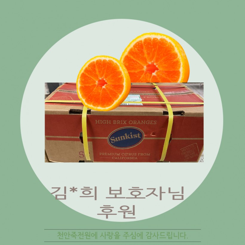 [후원]거주인 김**씨 보호자 페이지 정보 작성자 운영자 작성일22-04-25 17:27 조회278회 댓글0건 관련링크 목록 본문 2022.04.08(금)거주인 김**씨 보호자께서맛있는 오렌지를 후원해 주셨습니다 감사합니다 :) 댓글목록 등록된 댓글이 없습니다. 목록