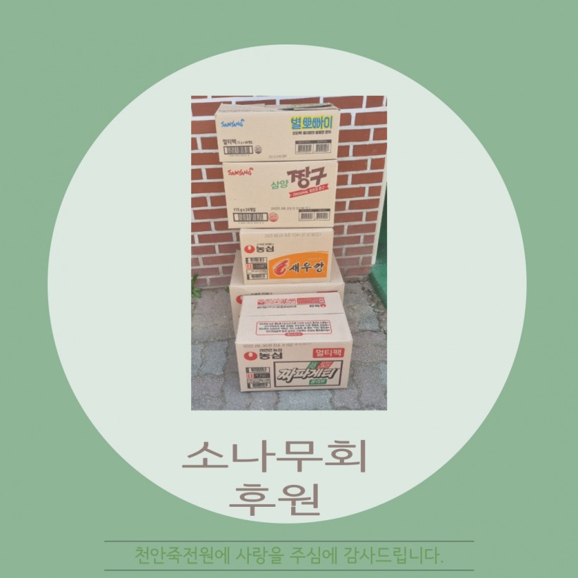 [후원] 소나무회 페이지 정보 작성자 운영자 작성일22-04-25 17:41 조회286회 댓글0건 관련링크 목록 본문 2022.04.09(토)소나무회에서 간식 전달해 주시고 가셨습니다~항상 감사합니다 :) 댓글목록 등록된 댓글이 없습니다. 목록