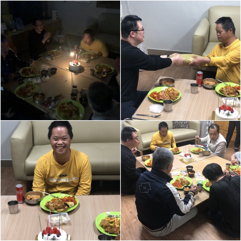 내용: 3월 10일 임*묵 씨 생일을 맞아 저녁 식사를 배달 주문하여 방 가족들과 함께 오붓한 시간을 보냈습니다.
