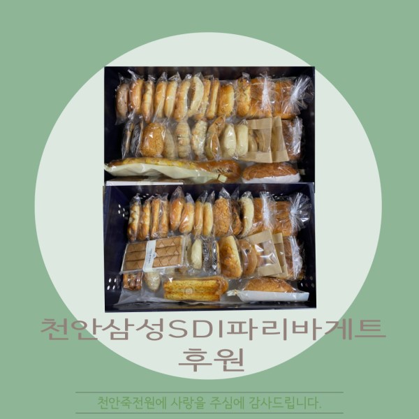 [후원]천안삼성SDI파리바게트 페이지 정보 작성자 운영자 작성일22-03-03 18:26 조회379회 댓글0건 관련링크 목록 본문 2022.03.03(목)천안삼성SDI파리바게트에서 빵을 후원해주셨습니다.항상 감사합니다 :) 댓글목록 등록된 댓글이 없습니다. 목록