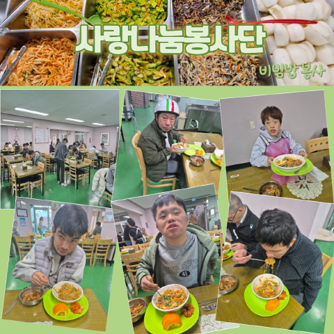 [자원봉사] 사랑나눔봉사단 페이지 정보 작성자 운영자 작성일24-12-11 16:45 조회474회 댓글0건 관련링크 목록 본문 2024. 12. 07 (토) 사랑나눔 봉사단이 월 1회 비빔밥 봉사를 위해 천안죽전원에 방문했습니다. 언제먹어도 맛있는 비빔밥!! 죽전원 가족들 모두 좋아하는 비빔밥입니다. 영양가 있고 맛있는 비빔밥을 제공해 주셔서 감사합니다. 댓글목록 등록된 댓글이 없습니다. 목록