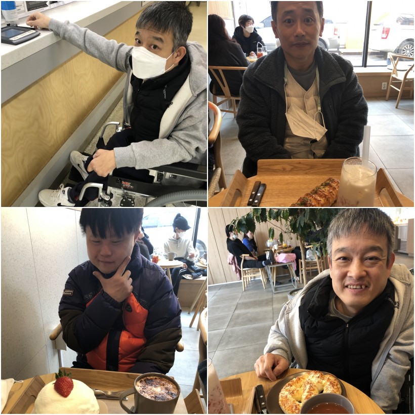 내용: 주민센터에서 서류 발급 하고 카페에서 커피와 빵을 드시며 즐거운 외부 활동을 다녀왔습니다.