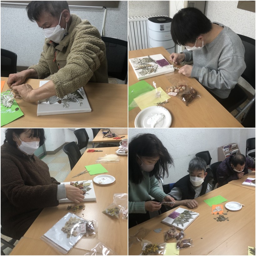 내용: 나다운 사회적협동조합에서 올해 화훼교실을 지원해주기로 했습니다. 월 2회 진행하고 가족분들이 오랜만에 다시 뵙는 강사님을 반갑게 맞이하셨고 오랜만에 활동이지만 좋은 솜씨로 캔버스꽃바구니를 완성했습니다.