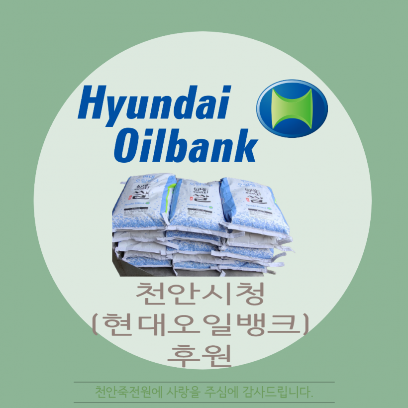 [후원]천안시청(현대오일뱅크) 페이지 정보 작성자 운영자 작성일22-01-18 17:37 조회326회 댓글0건 관련링크 목록 본문 2022.01.17(월)천안시청(현대오일뱅크)에서 쌀을 후원해주셨습니다.감사합니다 :) 댓글목록 등록된 댓글이 없습니다. 목록