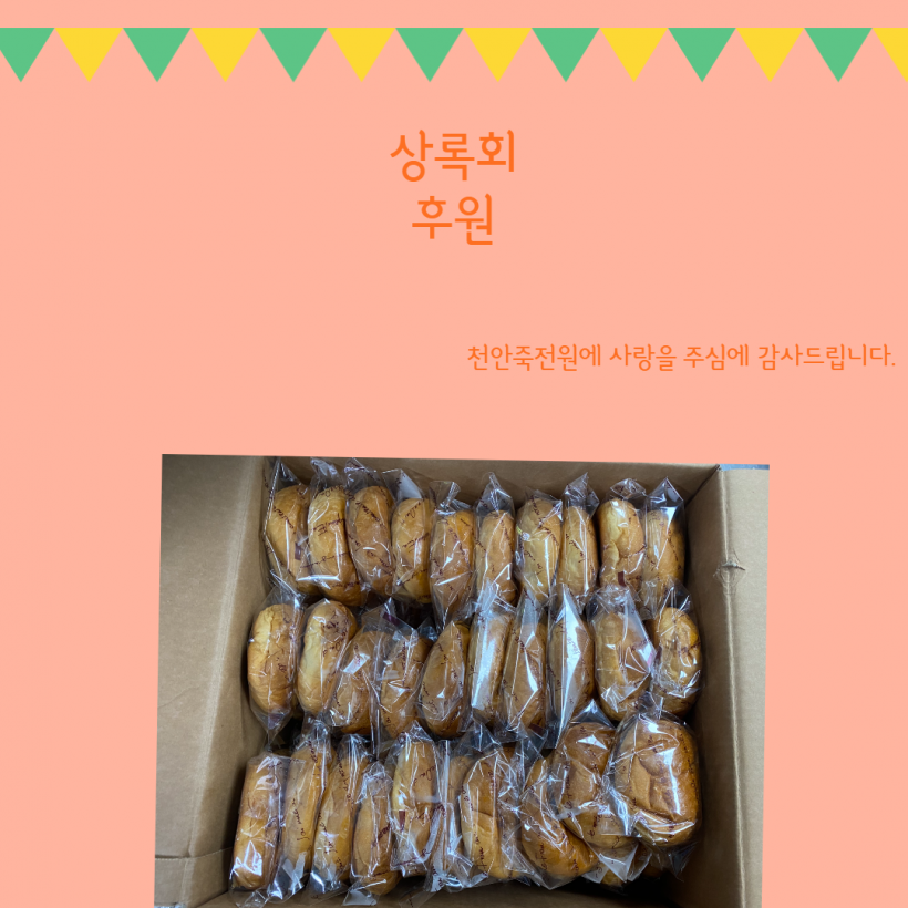 [후원] 상록회 페이지 정보 작성자 운영자 작성일21-12-31 16:36 조회289회 댓글0건 관련링크 목록 본문 2021.12.29(수)상록회에서 직접 만든 단팥빵을 후원해 주셨습니다.감사합니다. 댓글목록 등록된 댓글이 없습니다. 목록