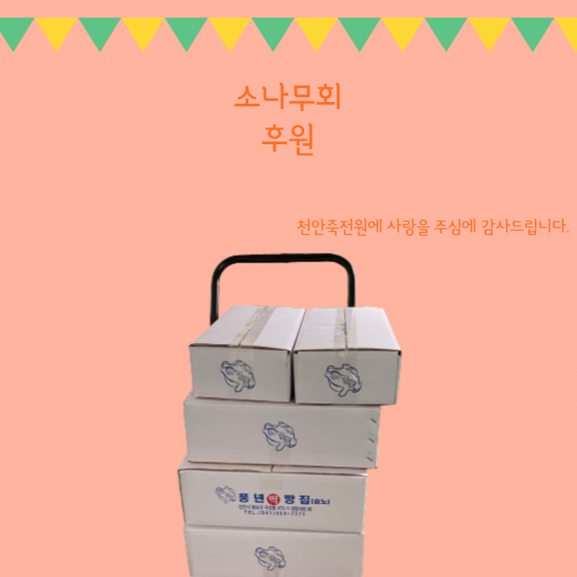 [후원] 소나무회 페이지 정보 작성자 운영자 작성일21-12-31 16:40 조회315회 댓글0건 관련링크 목록 본문 2021.12.30(목)죽전원으로 방문하셔서 떡국떡을 전달해 주셨습니다항상 감사드립니다. 댓글목록 등록된 댓글이 없습니다. 목록