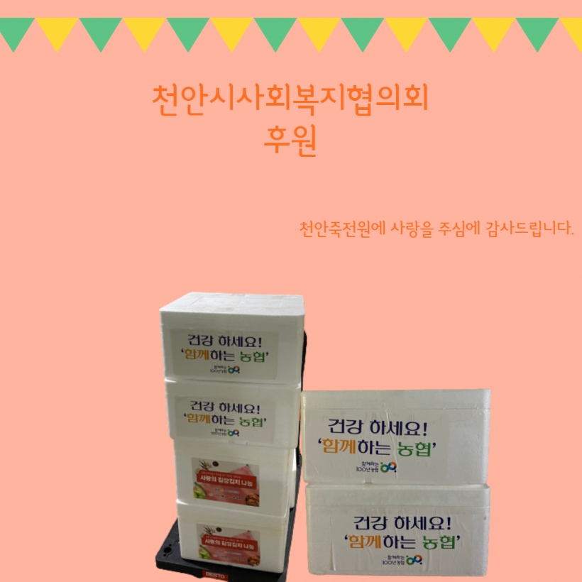 [후원] 천안시사회복지협회 페이지 정보 작성자 운영자 작성일21-12-09 11:17 조회342회 댓글0건 관련링크 목록 본문 2021.12.08.(수) 천안시사회복지협회에서 맛있는 김치와만두를 후원해주셨습니다.감사합니다 :) 댓글목록 등록된 댓글이 없습니다. 목록