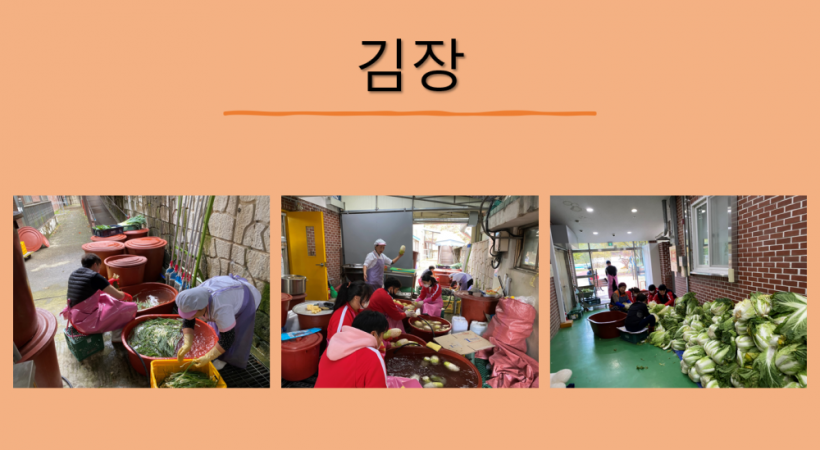 김장 페이지 정보 작성자 운영자 작성일21-11-15 10:16 조회363회 댓글0건 관련링크 목록 본문 2021.11.11.(목) ~ 11.12.(금)김장철을 맞이하여 내년에 가족들과 맛있게 먹을 김장을 하였습니다.힘들었지만 다들 맛있게 먹을 가족들을 생각하며 김장하시는 선생님들 모습이 아름답습니다~ 댓글목록 등록된 댓글이 없습니다. 목록