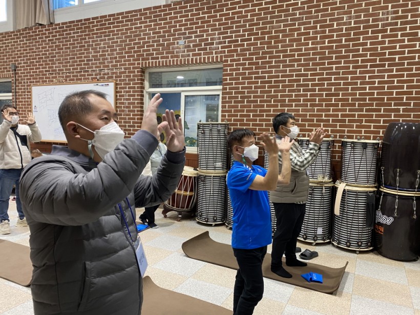 건강체조와 춤을 배우며 참여하는 모습이 행복해 보입니다~