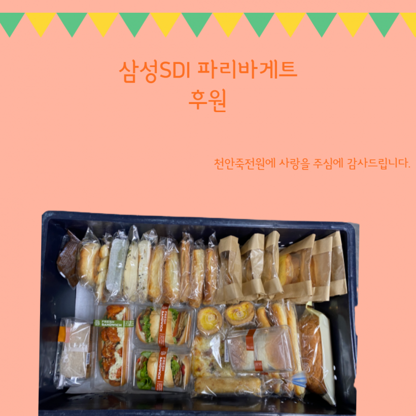 [후원]삼성SDI파리바게트 페이지 정보 작성자 운영자 작성일21-12-06 13:48 조회355회 댓글0건 관련링크 목록 본문 2021.12.03.(금) 삼성SDI파리바게트에서 빵 후원해주셨습니다.감사합니다 :) 댓글목록 등록된 댓글이 없습니다. 목록